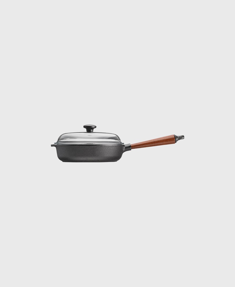 Traktörpanna 25 cm med trähandtag & glaslock