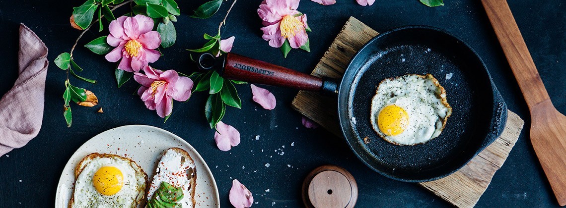 Egg/Blini pan 20x20 cm - Swedish brown stained beech wood handle & helper lip. Suitable for all hobs.
