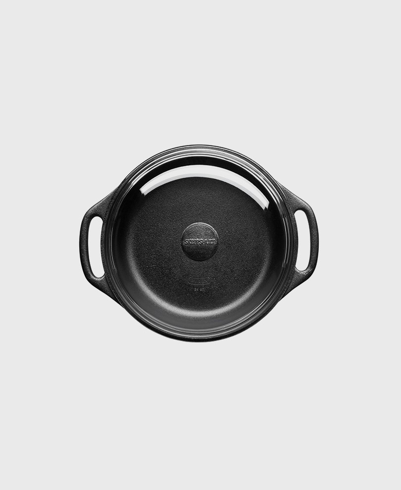 Gjutjärn, trä, stål och inbränd olja. Naturligt, enkelt, robust och fungerar på alla värmekällor. Med en naturlig non-stickyta som förbättras med användande är alla våra stekkärl gjorda för att hålla, år efter år, från generation till generation. Det är ett enkelt men ändå krävande hantverk. Varje detalj gjuts i en unik sandform som sedan slås sönder. Därför blir varenda skepphultprodukt unik och inte den andra exakt lik. Stolt hantverk från vårt gjuteri i de småländska skogarna.