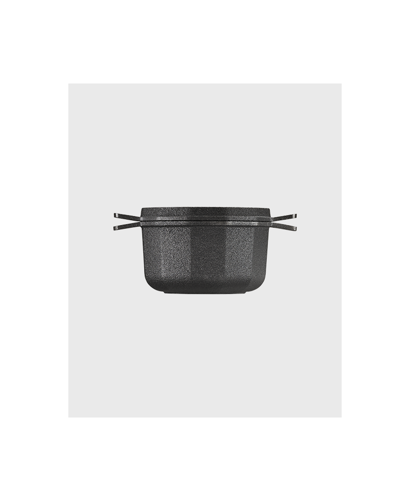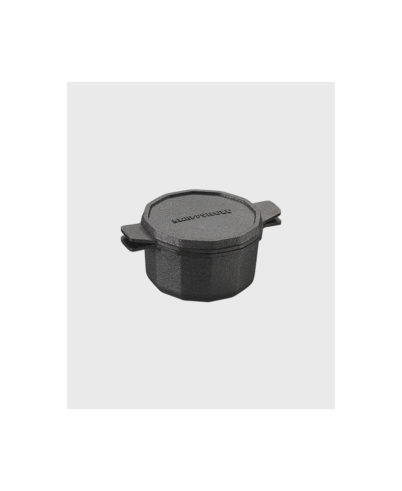 En dodekagon formad gjutjärns cocotte med integrerat gjutjärnshandtag. Cocotte har en volym på 0,2L, vikt 1,1kg och har precisions frästa kanter och precision svarvad botten. Gjord av gjutjärn, inbränd med ekologisk KRAV-märkt rapsolja. Designad av Note Design Studio och gjord för hand i Skeppshult, Sverige.