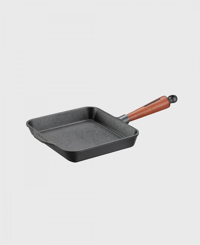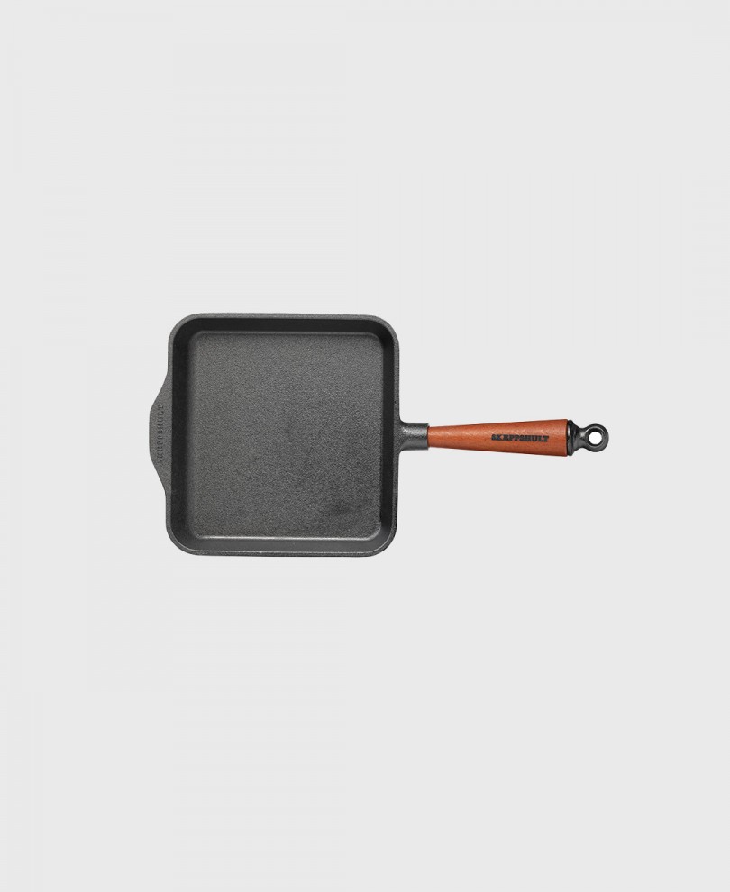 Gjutjärn, trä, stål och inbränd olja. Naturligt, enkelt, robust och fungerar på alla värmekällor. Med en naturlig non-stickyta som förbättras med användande är alla våra stekkärl gjorda för att hålla, år efter år, från generation till generation. Det är ett enkelt men ändå krävande hantverk. Varje detalj gjuts i en unik sandform som sedan slås sönder. Därför blir varenda skepphultprodukt unik och inte den andra exakt lik. Stolt hantverk från vårt gjuteri i de småländska skogarna.