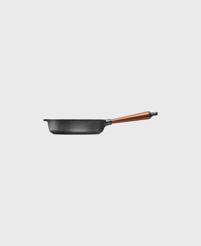 Gjutjärn, trä, stål och inbränd olja. Naturligt, enkelt, robust och fungerar på alla värmekällor. Med en naturlig non-stickyta som förbättras med användande är alla våra stekkärl gjorda för att hålla, år efter år, från generation till generation. Det är ett enkelt men ändå krävande hantverk. Varje detalj gjuts i en unik sandform som sedan slås sönder. Därför blir varenda skepphultprodukt unik och inte den andra exakt lik. Stolt hantverk från vårt gjuteri i de småländska skogarna.